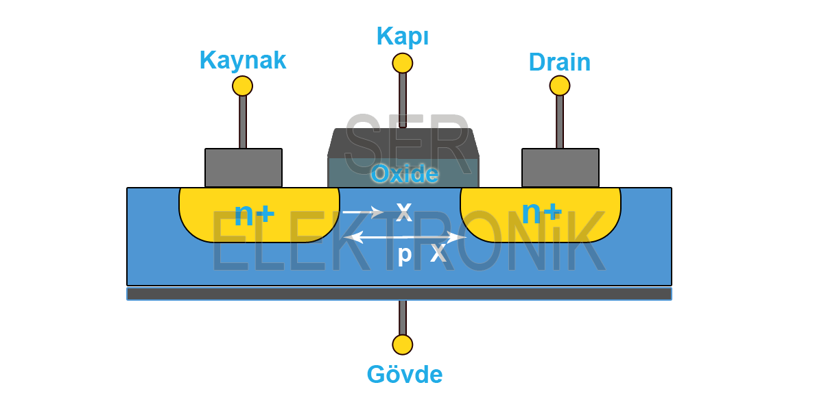 - P tipi yarı iletken MOSFET’in tabanını oluşturur.